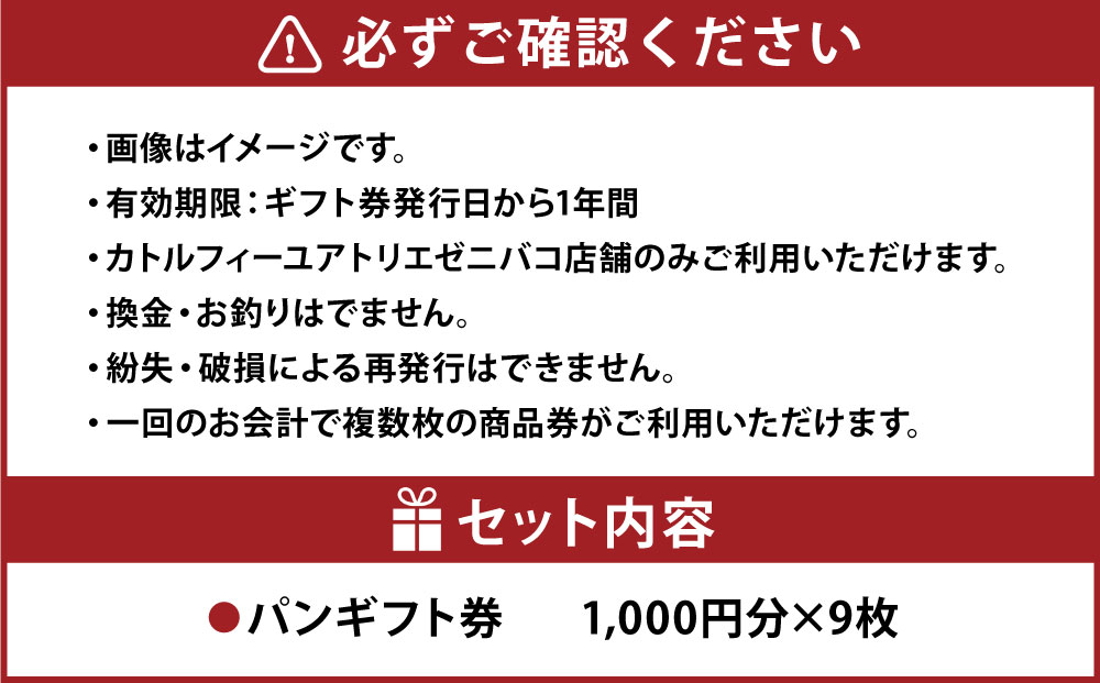 パンギフト券1000円分×9枚