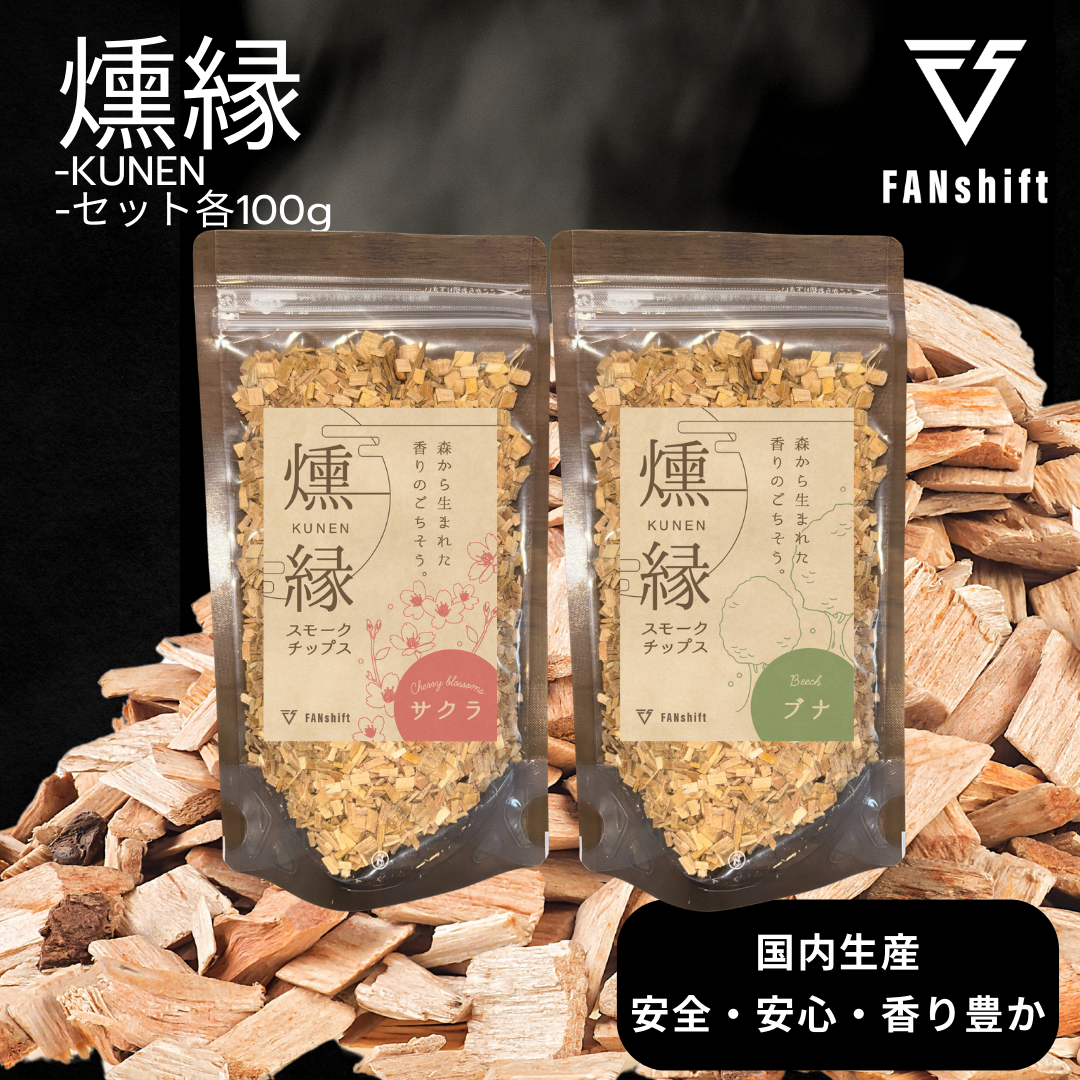 こちらのスモークチップ燻縁は、香りの個性が際立つ2種の燻製木材チップを厳選。 甘み、深み、スモーキーなど食材に合わせて“香りを選ぶ”楽しさを。 自宅で、キャンプで、あなた好みの味と香りがきっと見つかる。