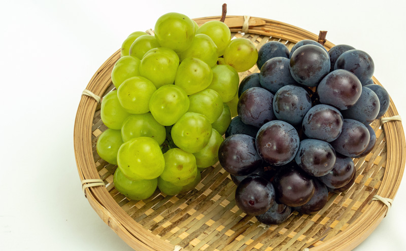 強い甘みとバランスの良い酸味を持つニューピオーネと桃のような形をした皮ごと食べられる爽やかな甘さの瀬戸ジャイアンツの詰合せ。