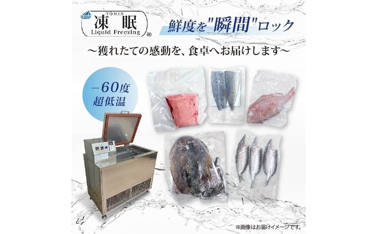 高知県室戸市佐喜浜町に位置する、佐喜浜漁業大敷組合を主体とした定置網漁法で水揚げされた様々な魚種に加え、漁師仲間が一本釣りで釣る魚種等を新鮮なうちに漁港より徒歩1分の場所にある水産内加工場で即座に処理し、マイナス35℃で凍結。マイナス60℃で凍結保管までの、解凍後ドリップ(旨味成分)の流出をなるべく新鮮魚以上の味わいで美味しくお召し上がり頂けます。
