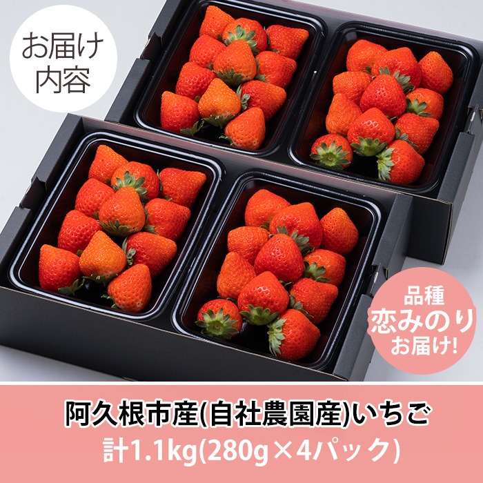 阿久根市産(自社農園産)いちご:280g×4パック