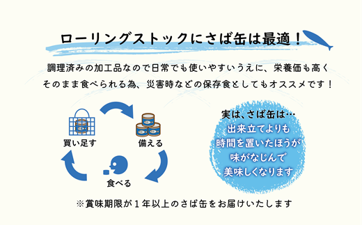 自然災害の備えとしてもさばの缶詰はぴったり。日々を安心して暮らすためにも、いざという時に備えて非常食を用意しておくのは大切です。賞味期限は出荷日より1年以上の缶詰をお送りします。