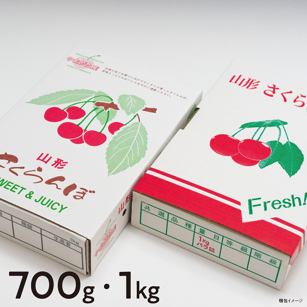 【品種】さくらんぼ ( 佐藤錦 ・ 紅秀峰 ) 【容量】ご家庭用(M サイズ以上):1箱ばら詰め 約1kg