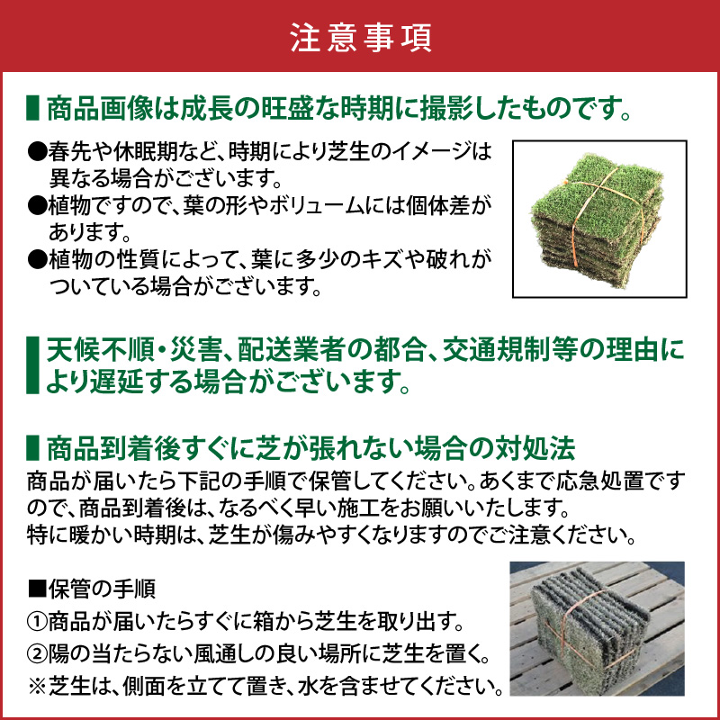※商品が届いたら下記の手順で保管してください。あくまで応急処置ですので、商品到着後は、なるべく早い施工をお願いいたします。特に暖かい時期は、芝生が傷みやすくなりますのでご注意ください。