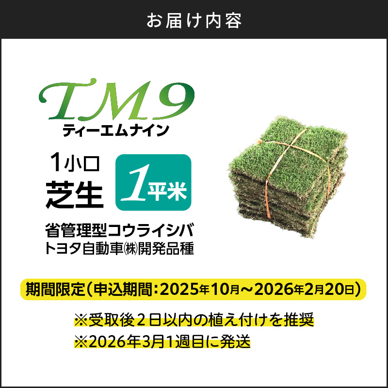 TM9(ティーエムナイン)省管理型コウライシバ 芝生1平米