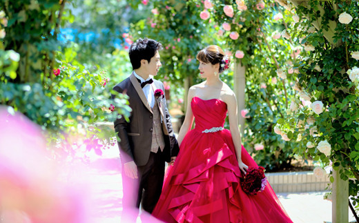 春は桜、夏はバラ園、秋は紅葉等、四季折々の景色を背景におふたりごのみのお写真を残すことができます。