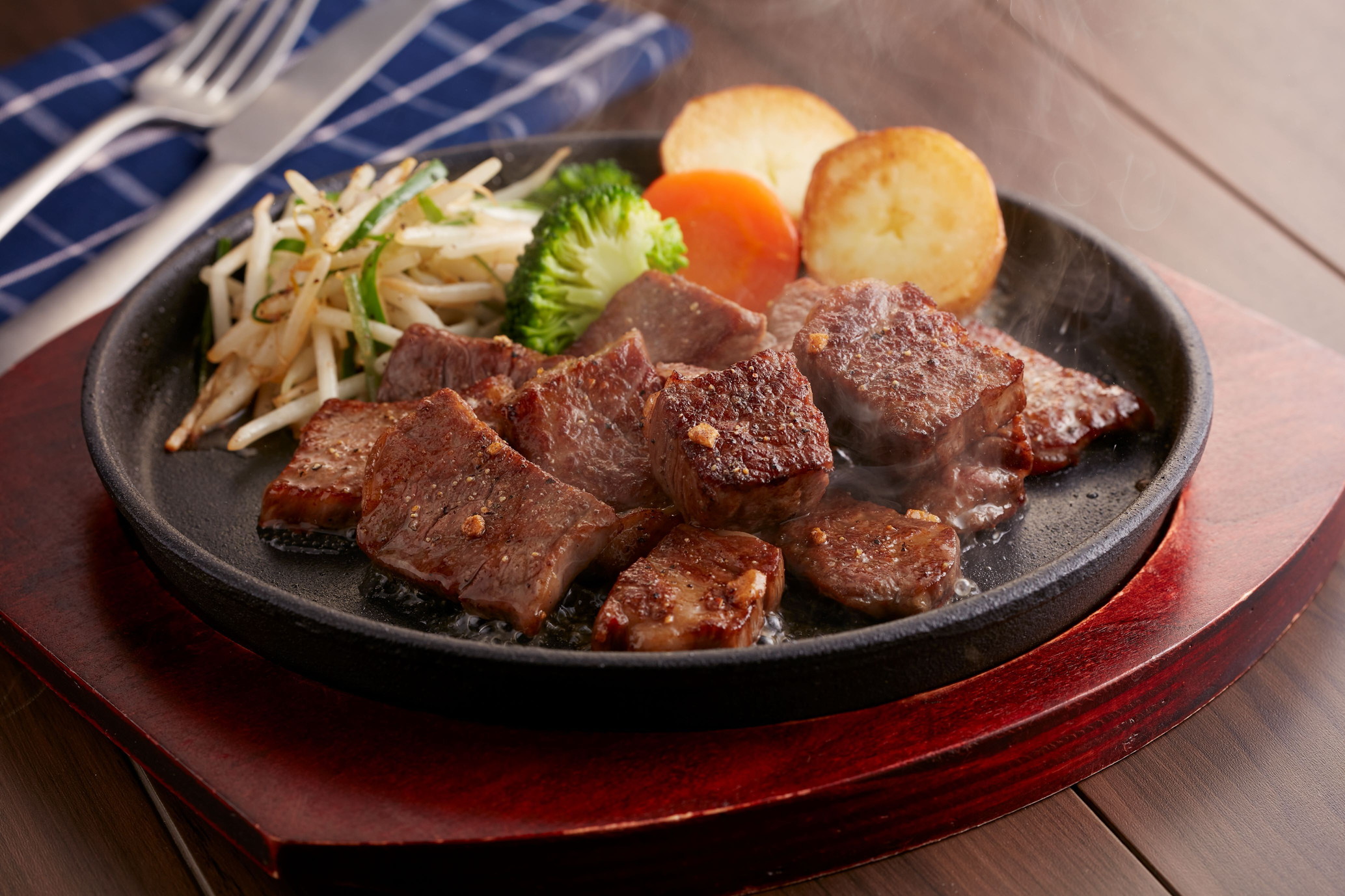 佐賀牛の部位の中でも柔らかくきめ細かいサシが特徴のサーロインをサイコロ状にカットしました。ブラックペッパーがアクセントになり、素材の旨味を引き出す、ふじ匠オリジナルの「肉専用 にんにく塩」をかけてお楽しみください。