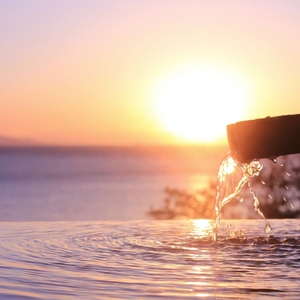 海面から昇る神々しい光を放つ朝日。そして月夜の晩には海面にキラキラ輝く月の道。