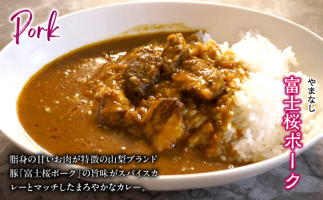 レトルトとは思えない本格スパイスカレーに山梨県自慢のブランド豚富士桜ポークをたっぷり使用。