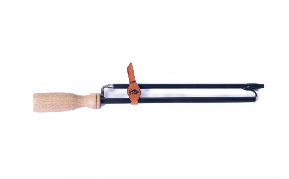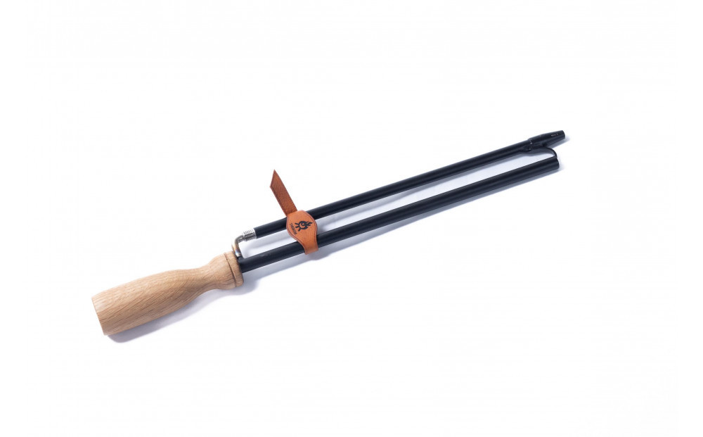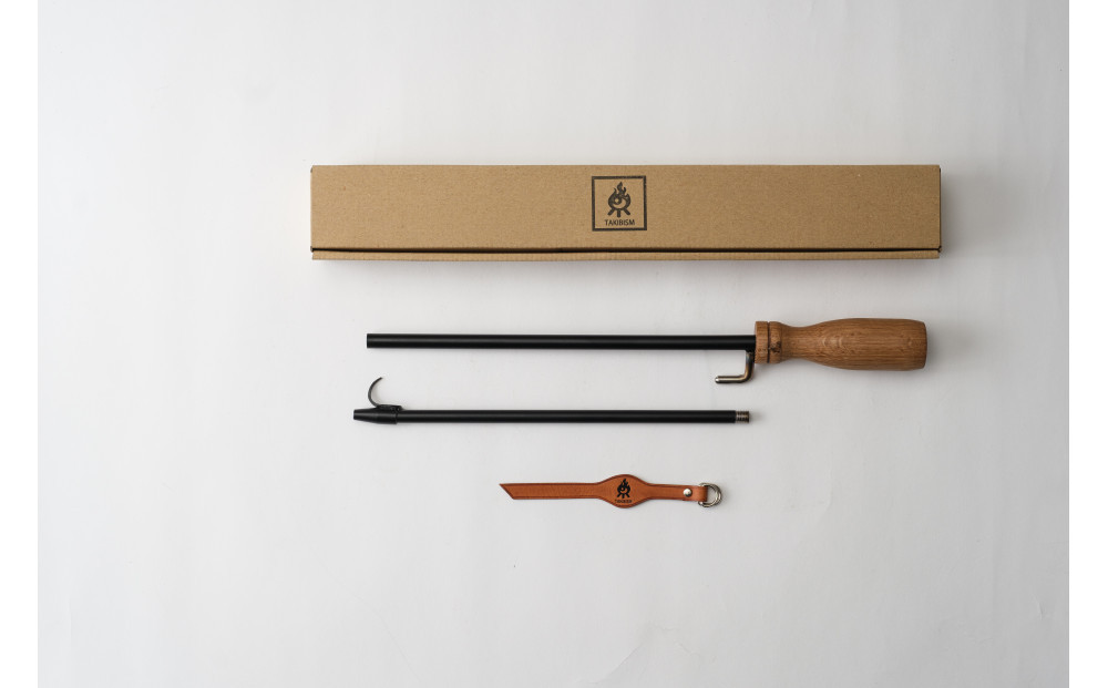 本品は完全ハンドメイドで1本1本製作されます。火吹き棒と火掻き棒の機能を合わせもち、棒の部分が半分に分割でき、ハンドル側の突起に分割した先端側を差し込めるので、コンパクトに美しく持ち運べます。