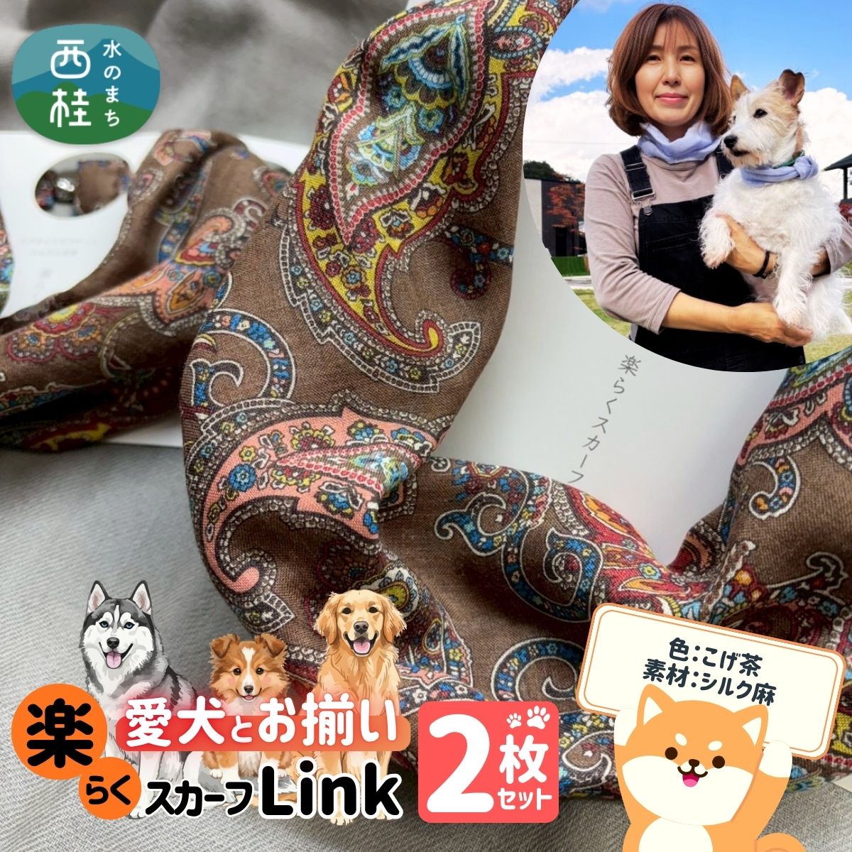 色:こげ茶・素材:シルク麻。愛犬とお揃いで着用できるセットです。