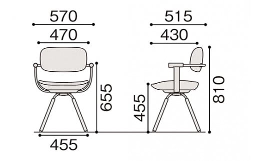 【サイズ】W570(脚:455mm)×D515×H810mm(SH455mm)