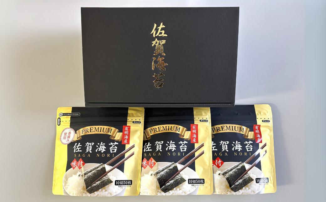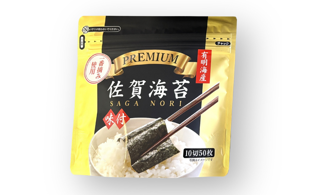初摘み上級等級の贅沢な佐賀海苔を、海苔本来の旨みが引き立つ醤油ベースの味たれを用いて味付のりにしました!