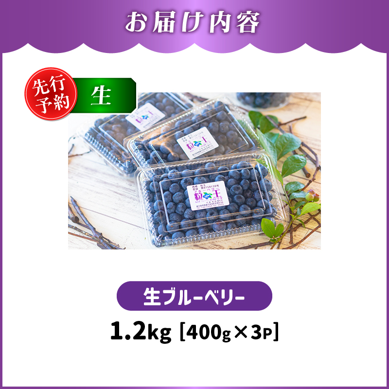 粒王 生ブルーベリー 1.2kg(400g×3パック)