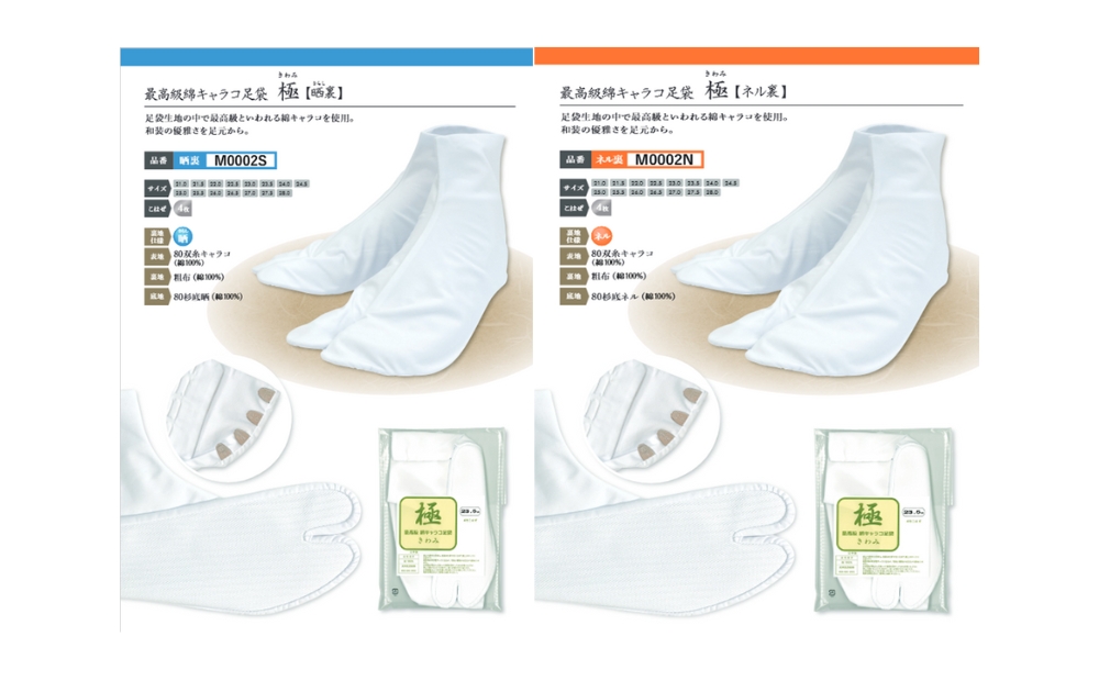 オールシーズン履ける晒裏と冬向けのネル裏 各1足ずつのセットです。