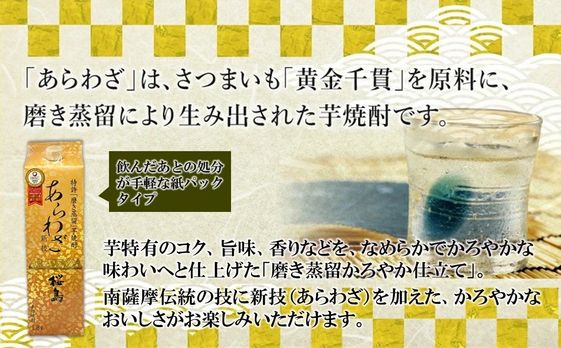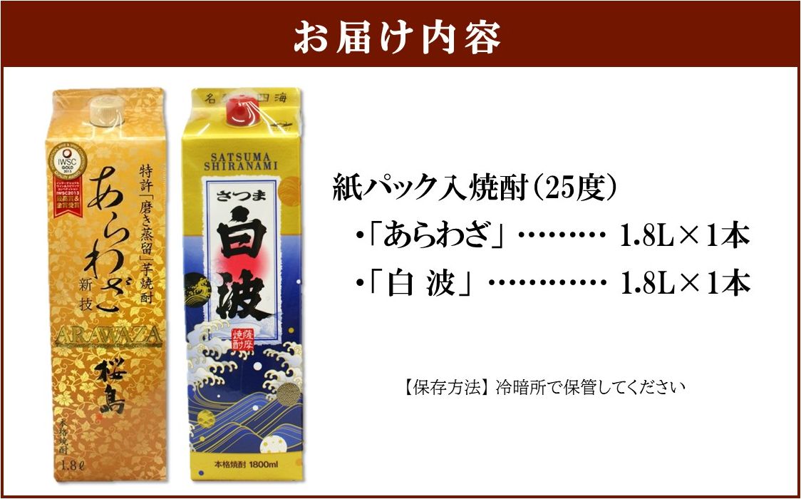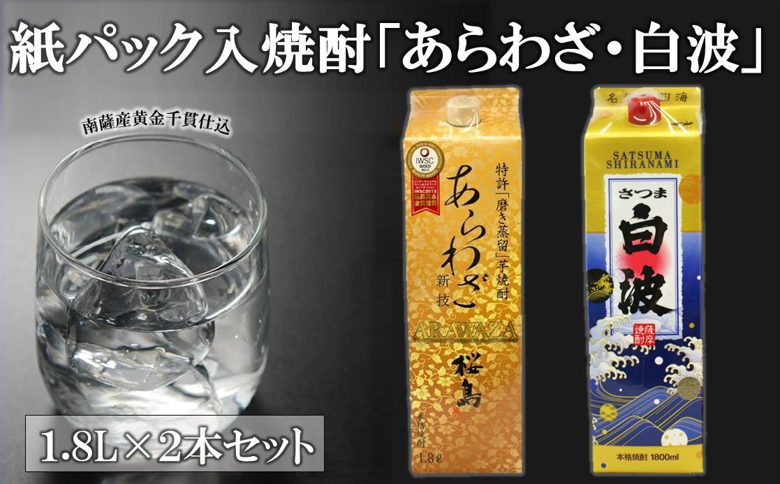 紙パック入焼酎1.8L×2本(あらわざ、白波)