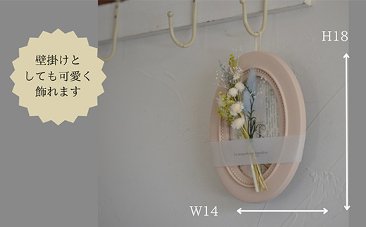 ナチュラルな風合いのドライフラワーを、上品なオーバル型フレームにあしらったインテリアフラワーです。