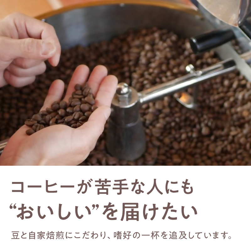 「コーヒーが苦手な人にも、おいしいを届けたい」という想いで、豆と自家焙煎にこだわり、嗜好の一杯を追及しています。