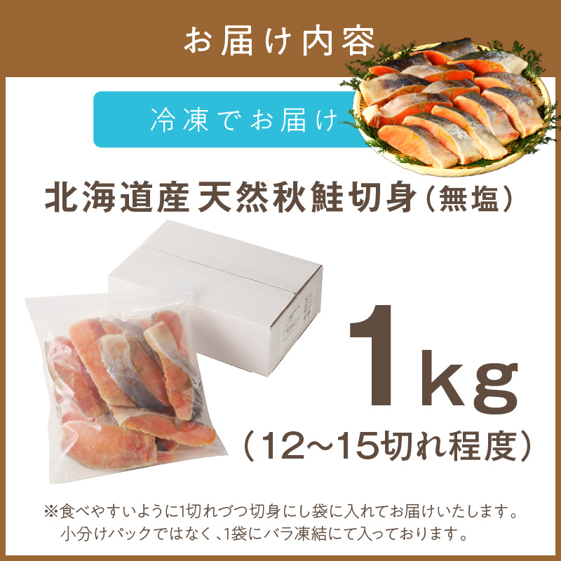 北海道産 生秋鮭切身1kg (12切れ~15切れ程度・無塩)