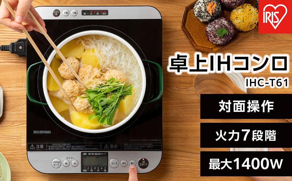 卓上で料理の保温から揚げ物まで多用途に使える簡単・便利なIHコンロです。●5つの安全機能・なべ検知機能・・・使えるなべ、使えないなべを自動的に判別します。・なべなし自動OFF・・・なべをのせないで加熱を開始すると、自動的に加熱を終了します。・小物検知機能・・・スプーン等のなべ以外の小物を置いても、自動的に加熱が停止します。・切り忘れ自動OFF・・・加熱調理を開始して、約2時間操作をしないと自動的に加熱を終了します。・温度過上昇防止機能・・・なべ底の温度が異常に上がったときに自動的に加熱を終了します。