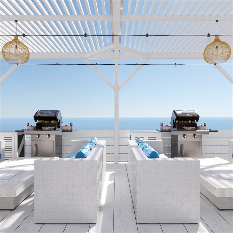 ラグジュアリーなビーチリゾートBBQ空間で蓋つきガスグリルを使った本格的なアメリカンBBQを。