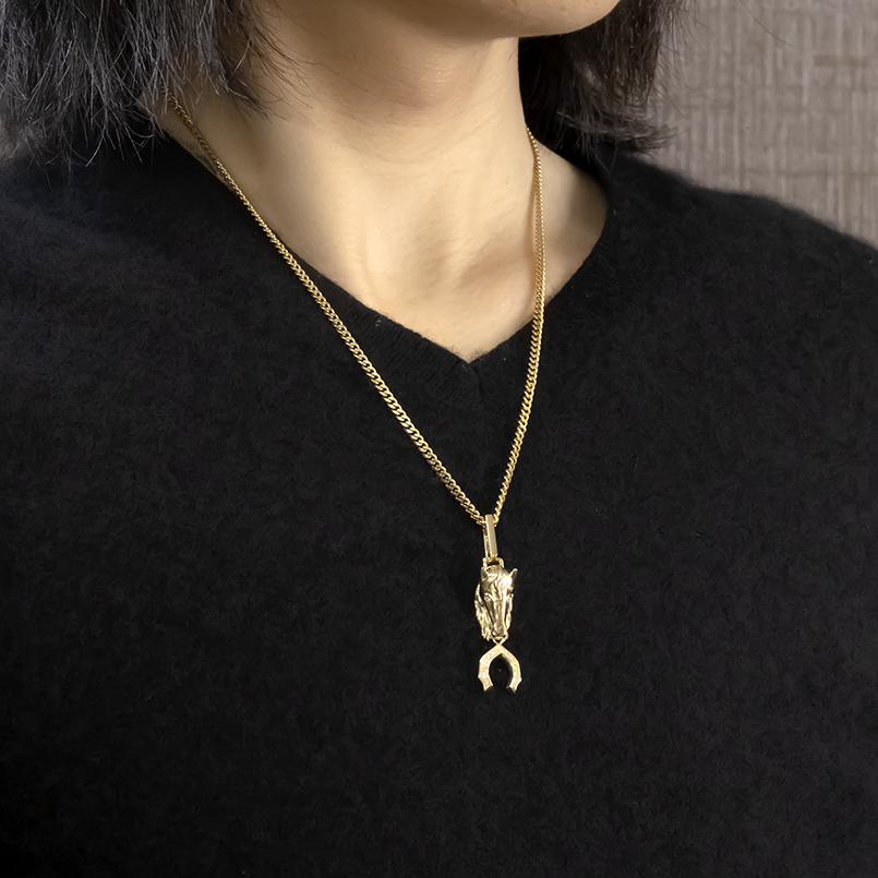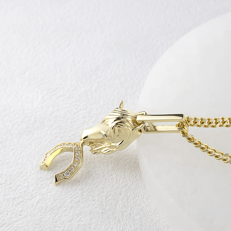 優雅で美しく知性的な表情の馬にダイヤモンドを留めた馬蹄がゴージャスなペンダントトップ