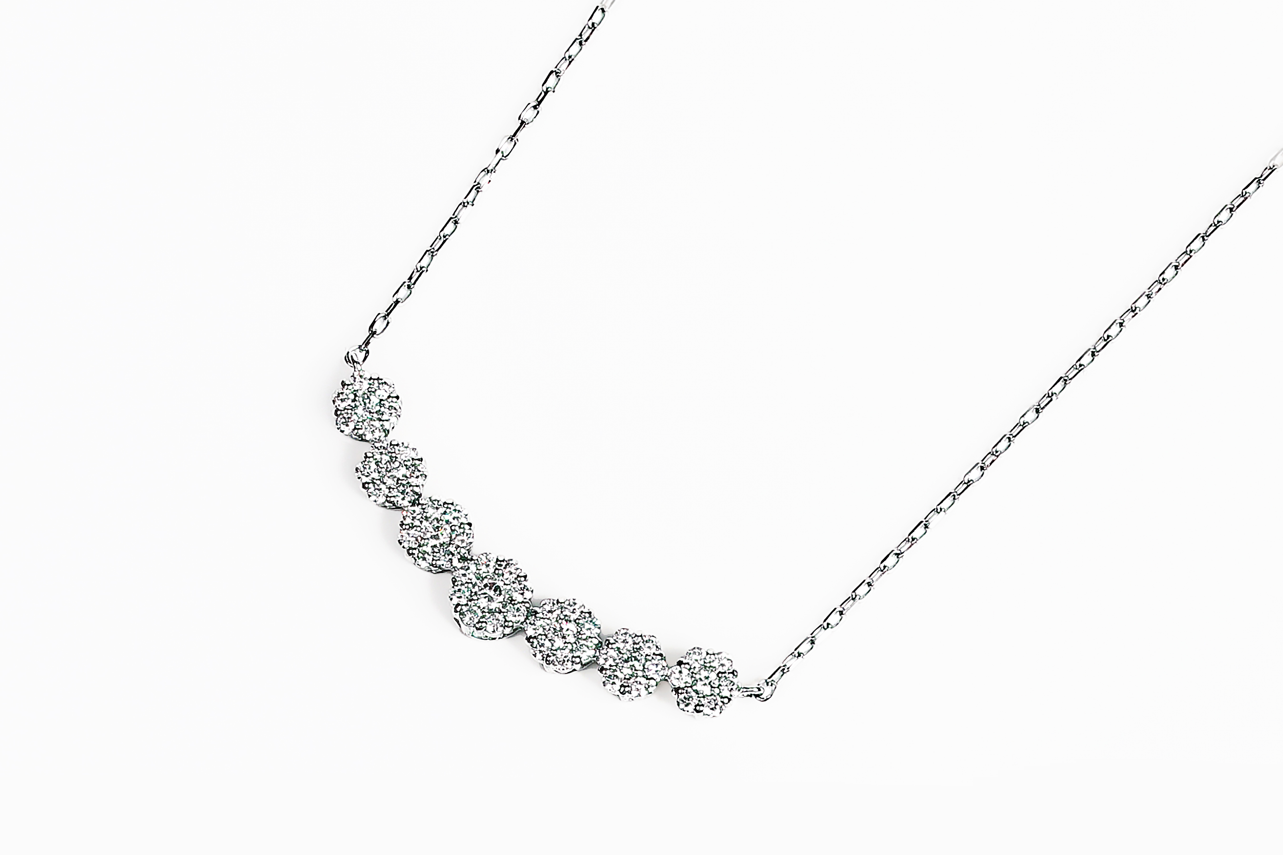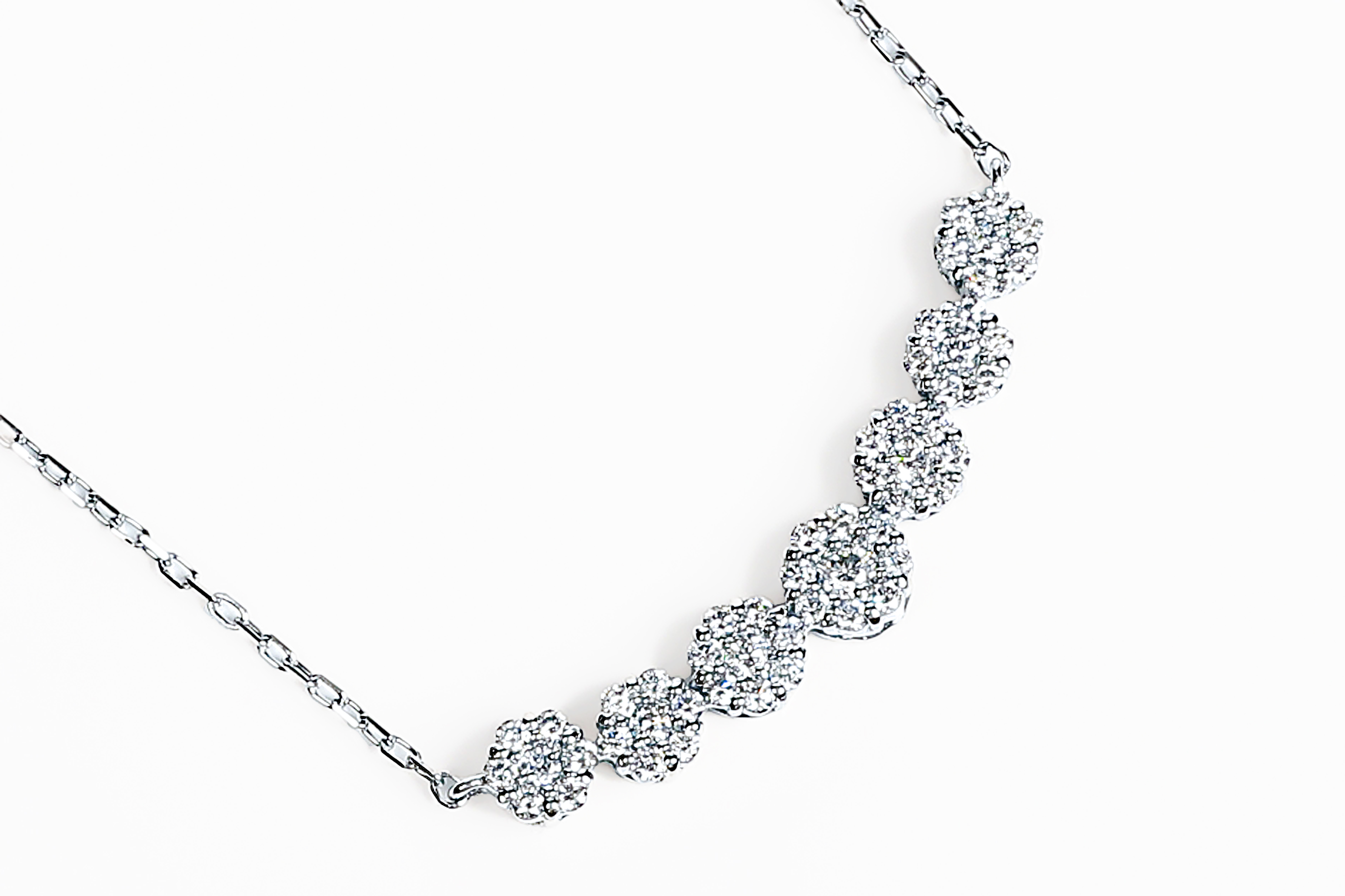 一個石ではなく敢えて小さなダイヤモンドを重ねたことにより0.3CTのペンダントであることが信じられないようなボリューム感のあるペンダントに仕上がっています。