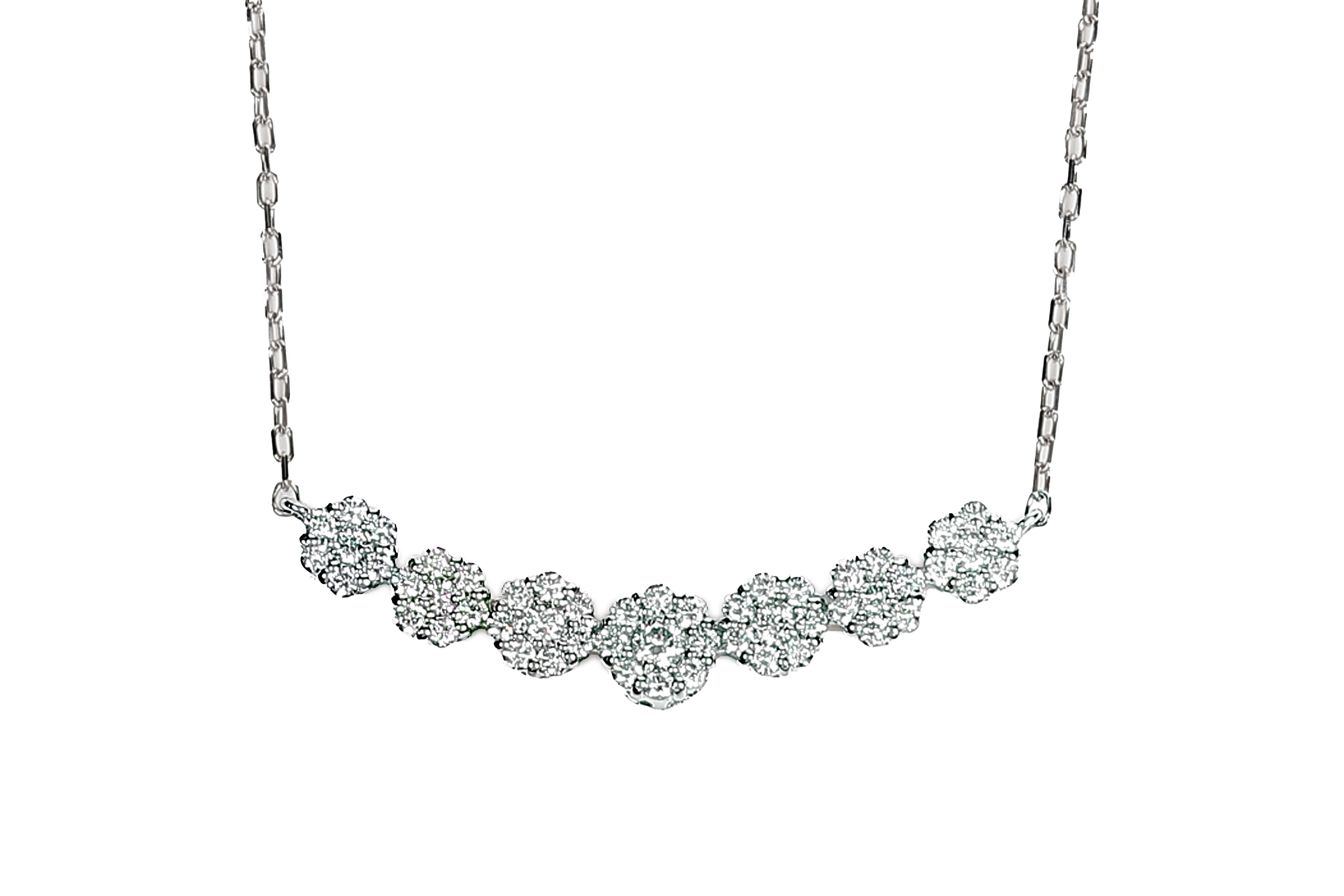 個々のパーツの中のダイヤモンドはまるで1石の大きなダイヤモンドの様にも見え、お付けいただいた方の胸元で煌いてくれると思います。