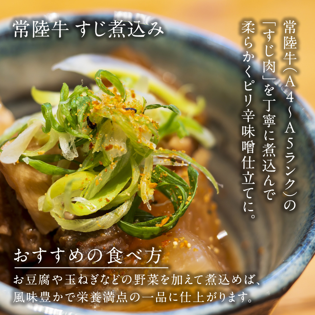 厳選された常陸牛のすじ肉を、丁寧に下処理。じっくりと時間をかけた煮込みで、