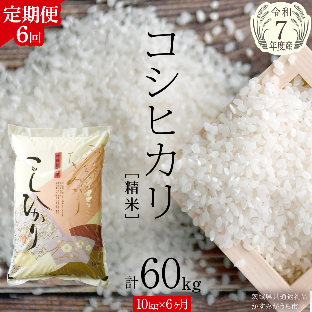 ![【 6ヶ月 定期便 】【 令和7年産 】 コシヒカリ 精米 10kg ( 10kg × 1袋 ) × 6回 ( 合計 60kg )(茨城県共通返礼品かすみがうら市)米 ごはん もっちり 甘い コメ お米 白米 銘柄米 [EX020sa]](https://www.furusato.aeon.co.jp/g_img/082317/3775086_1770097143_square_image(2).webp)