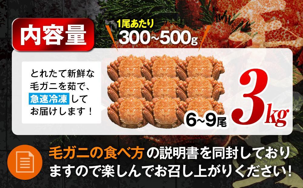 2026年産 ボイル冷凍毛ガニ 3kg 300g~500g 6~9尾
