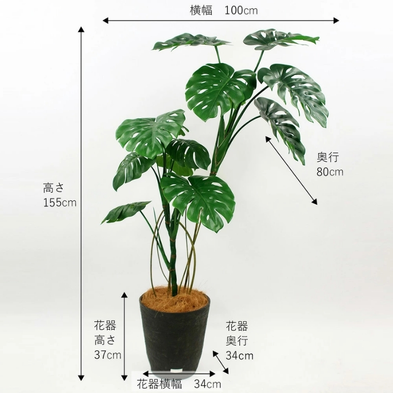 大きな葉が特徴で生命力あふれるモンステラは躍動感もありエントランスやリビングのシンボルツリーに最適。