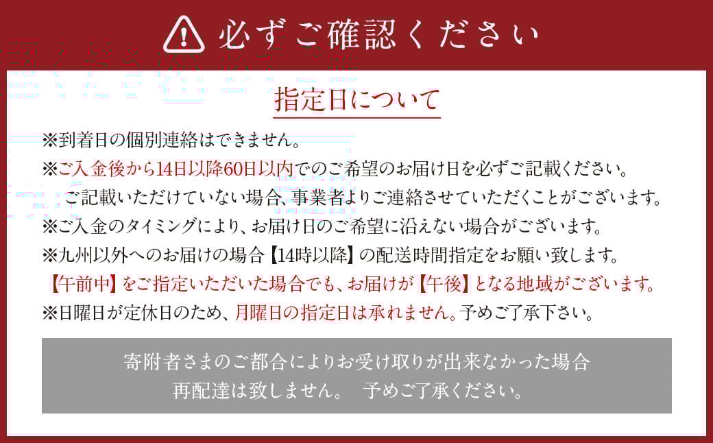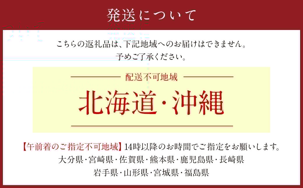 ※九州以外へのお届けの場合【14時以降】の配送時間指定をお願い致します。