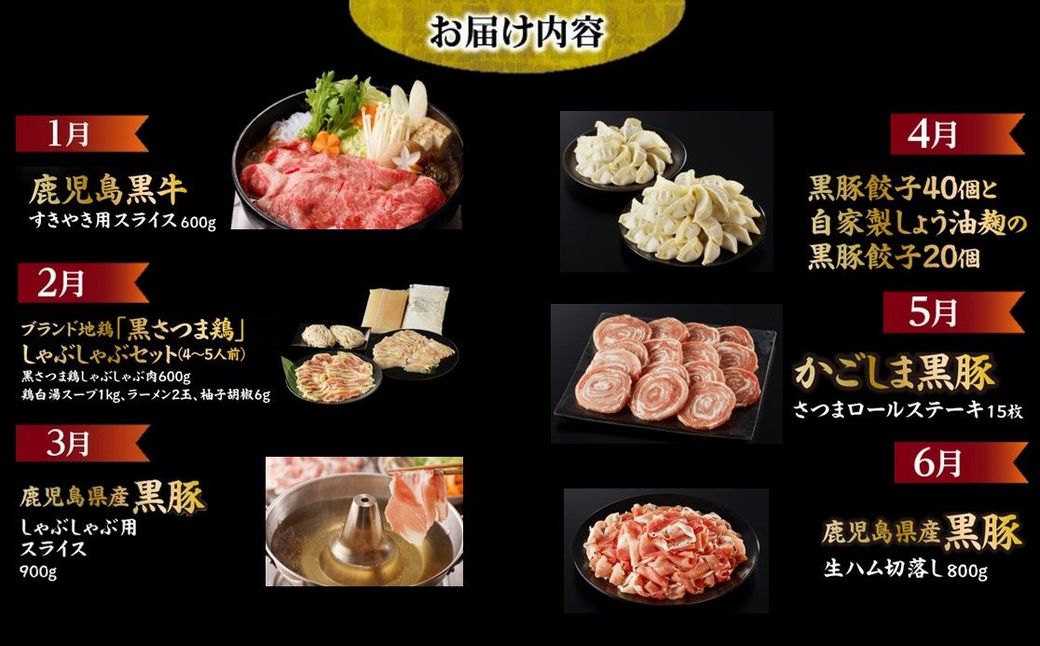 黒牛・黒豚・黒さつま鶏を存分に楽しめる大人気の定期便です。