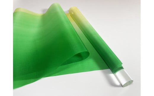染色作家の河村尚江の友禅技法により、鮮やかな色彩とダイナミックなグラデーションによる独自の表現を味わえます。