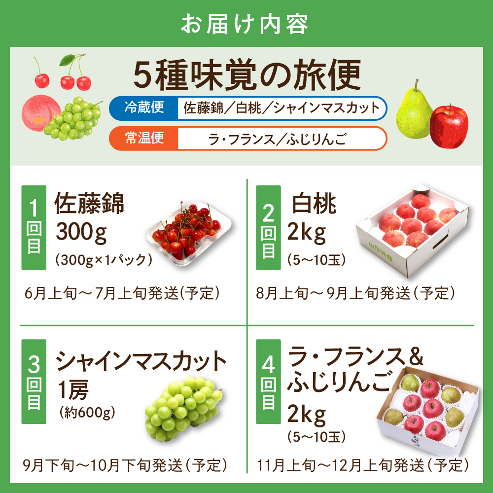 東根市の人気フルーツ5種類をお届けします!!合計4回の定期便となります。