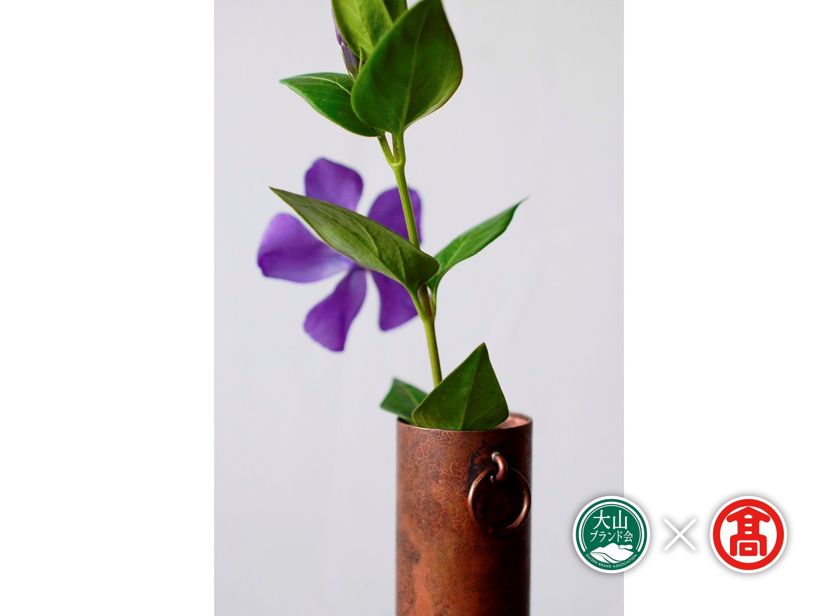 大山麗にて、銀・銅・真鍮を素材に、大好きな金属と向き合う日々です。優れた加工性や耐蝕性、経年変化をしてもなお美しい、金属の魅力を楽しめる花器を製作しました。底、金具は強度のある銀ロウ付けをしております。糠を塗り焼成した、ざらつきと酸化被膜を残した仕上げは、一点一点表情が違います。渋い金属色が草花を引き立て、銀イオンの効果でお花も長持ちします。(提供)tree frog
