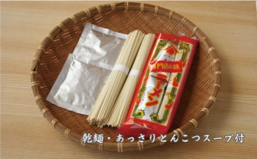 中細ストレートの乾麺、ポークとしょうゆの旨みあるスープ付です。