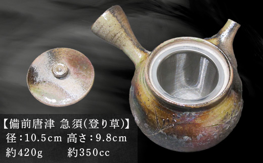 登り草の柄を、櫛目で入れた一点物の急須になります。