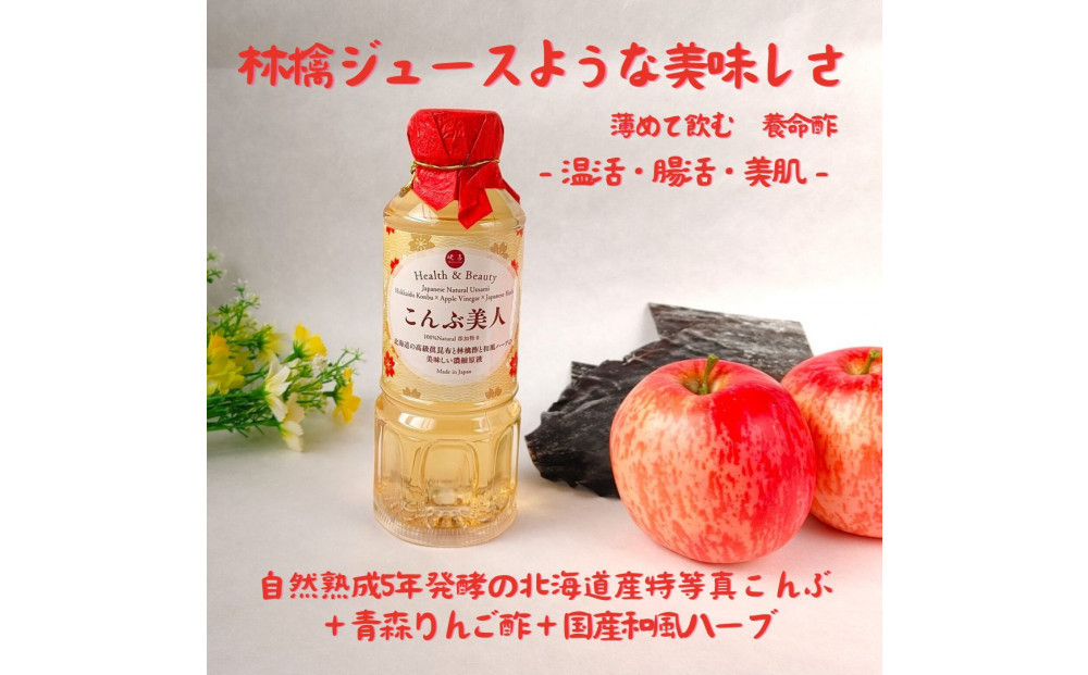 北海道産の希少な天然真昆布と青森の林檎酢、さらに和風ハーブを付け込んだ「養命酢」