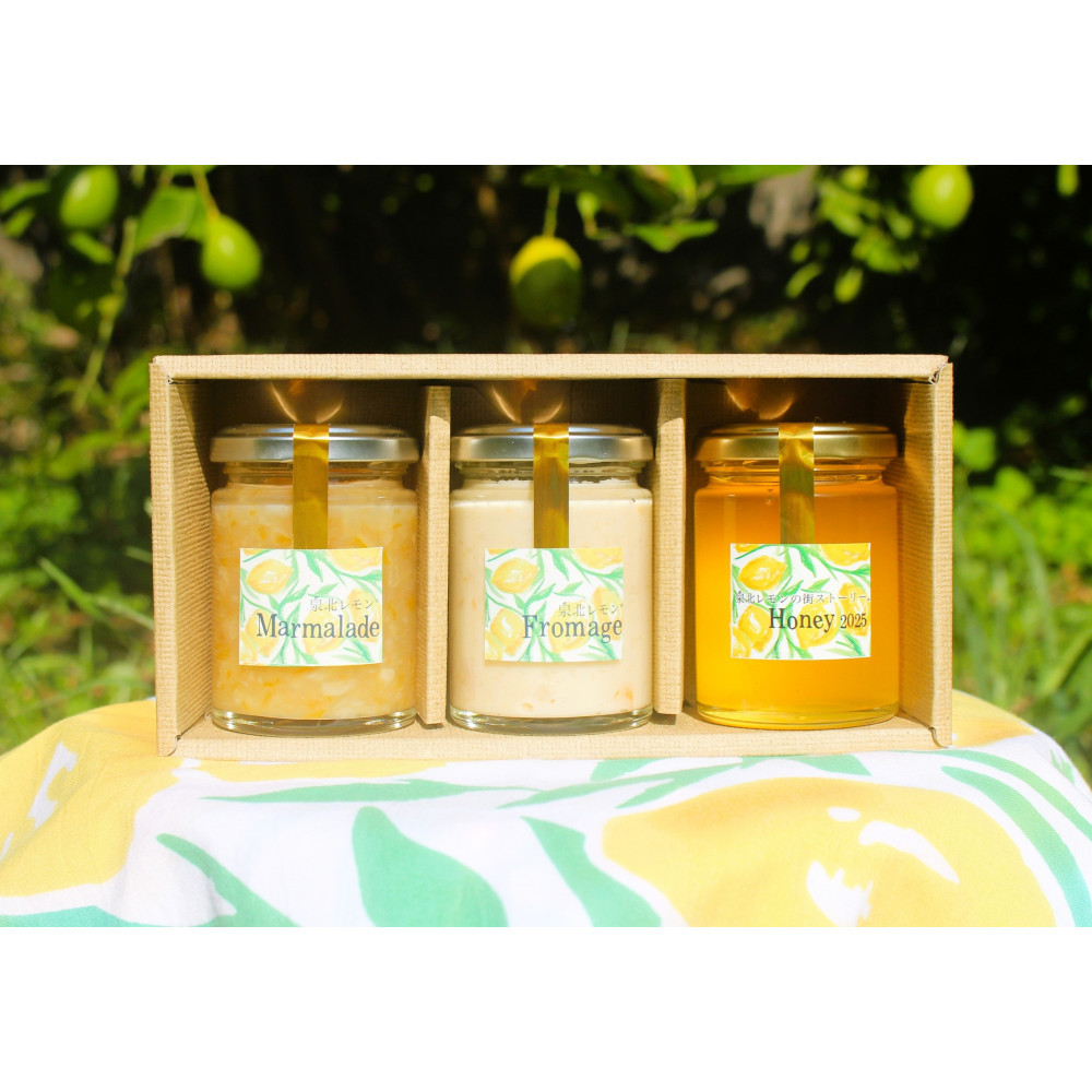 泉北レモンマーマレード・フロマージュと泉北レモンの街ストーリーHoneyを詰め込んだ、心満たされる3本セットです。