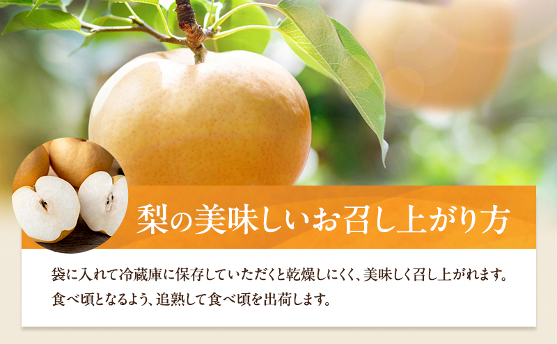 梨それぞれに熟成具合は異なりますが、追熟させると少ししっとりして食べ頃になります。