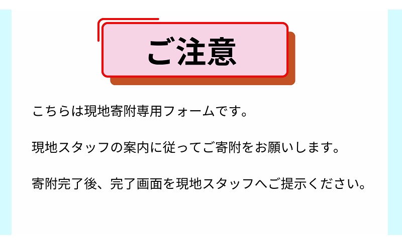 こちらは現地寄附専用フォームです。現地スタッフの案内に従ってご寄附をお願いします。