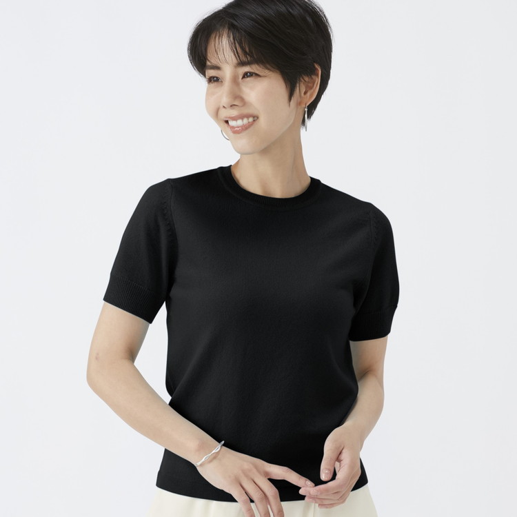日本製 カシミヤ100% レディース クルーネック半袖×1枚