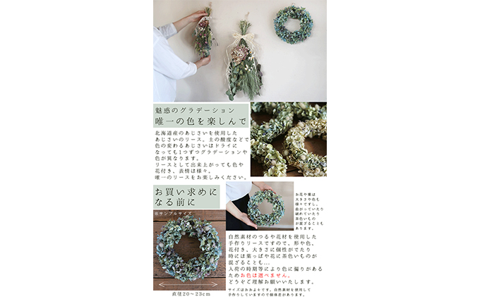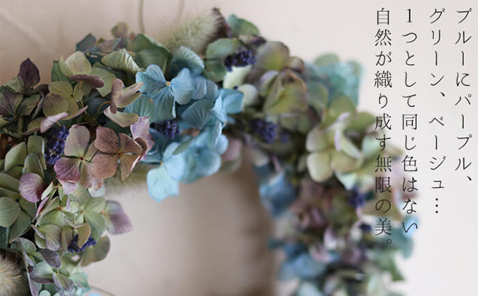 同じデザインでも一個ずつ色の違うあじさいのリースになります。