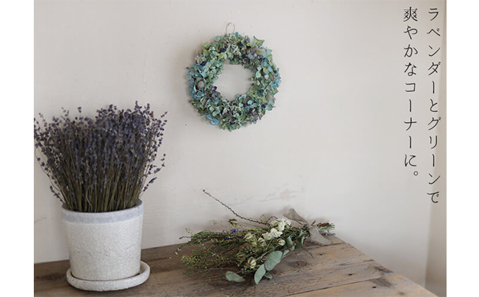 【素材】 ドライフラワー(上富良野産ラベンダー・北海道産あじさい・北海道産ラグラス)・ベース・ワイヤー