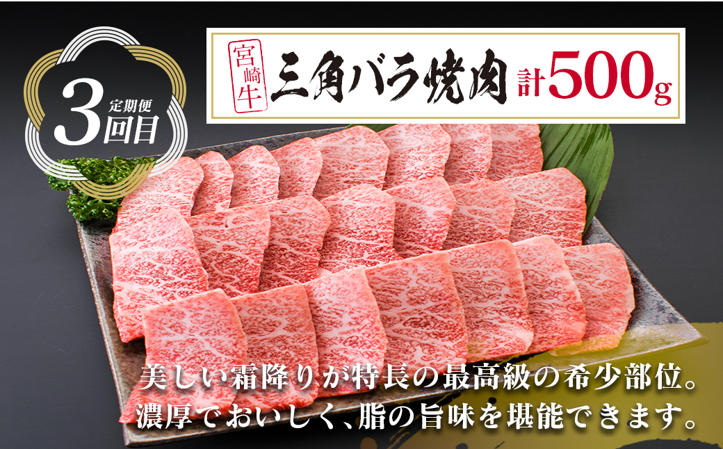 宮崎県が誇る最高級のブランド牛『宮崎牛』を毎月楽しめる『≪3か月お楽しみ定期便≫宮崎牛イチオシ焼肉セット』を返礼品としてご用意いたしました。