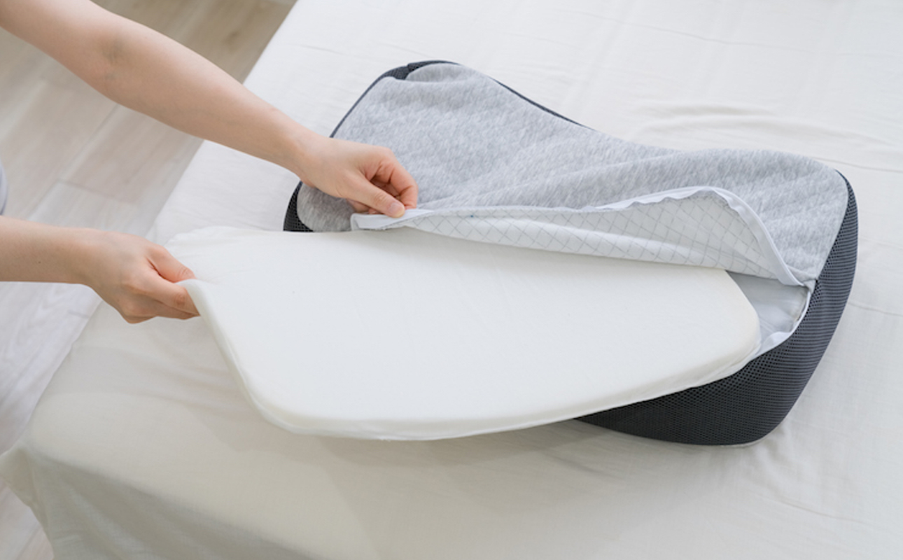 この枕は、自分自身で2段階で高さが変えられるので、その日、その日の試行錯誤でベストポジションを見つけることができます。