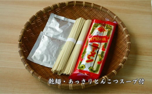 中細ストレートの乾麺、ポークとしょうゆの旨みあるスープ付きです。