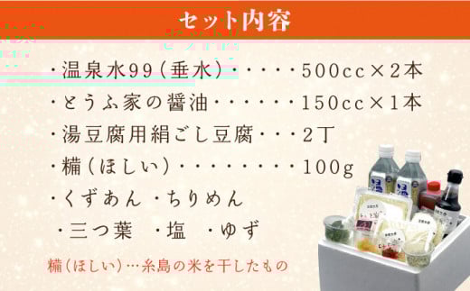 糸島産の大豆(フクユタカ)とにがりを使った、こだわりの手作り湯豆腐セットです。